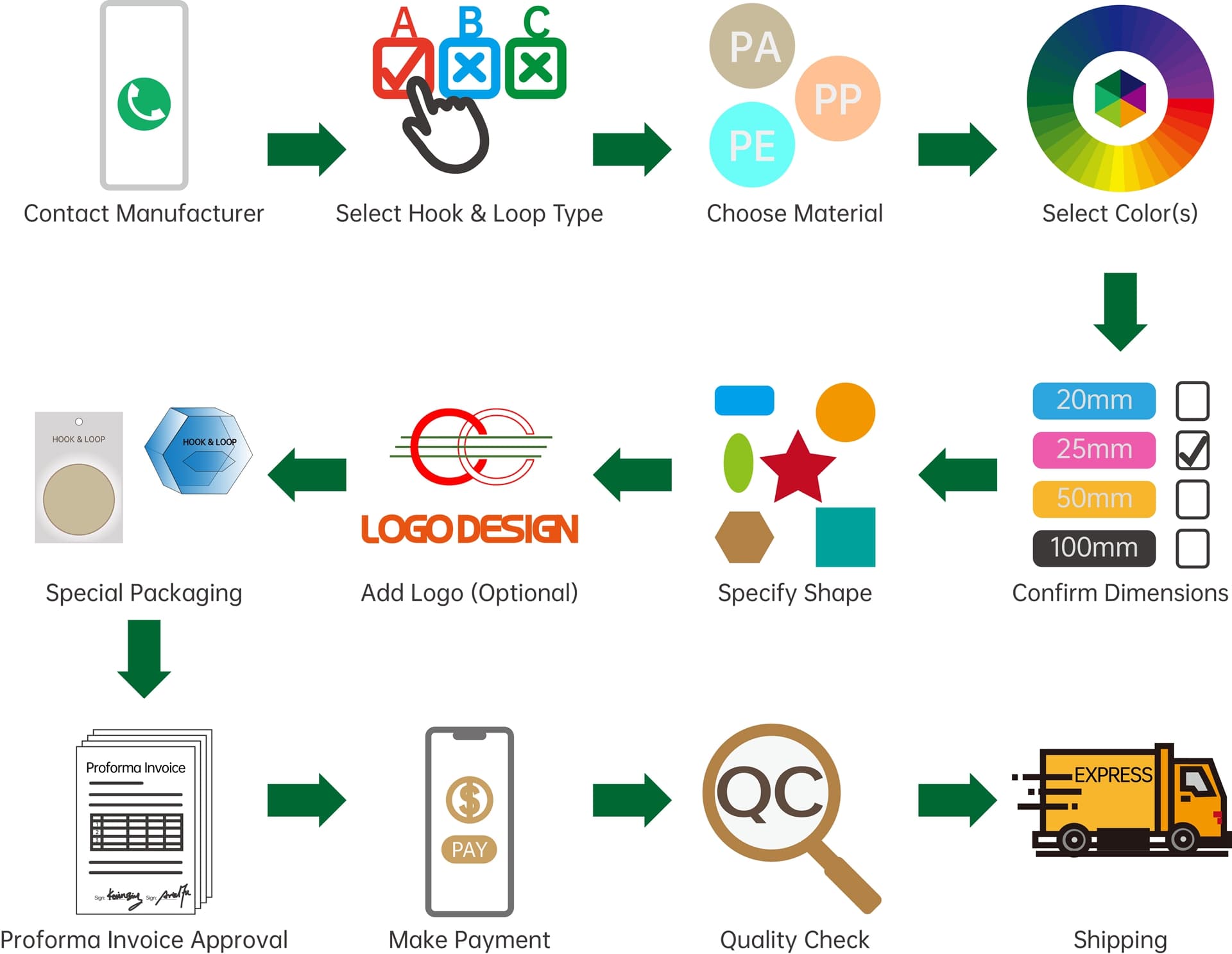 Vielen Dank für Ihr Interesse an unseren individuellen Klettprodukten. Um Ihnen einen reibungslosen Ablauf zu gewährleisten, haben wir unten unseren Standardbestellprozess beschrieben. Dieser transparente Ablauf begleitet Sie vom ersten Kontakt bis zur Lieferung.