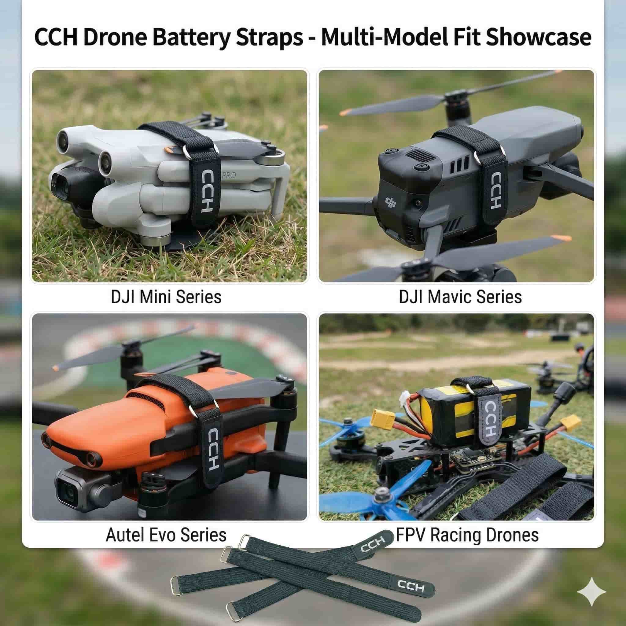 Die rutschfeste Oberfläche sorgt dafür, dass der Akku auch bei rasanten Manövern oder schnellen FPV-Rennen sicher an seinem Platz bleibt. Dank ihres wiederverwendbaren und verstellbaren Designs lassen sich die Gurte einfach anbringen und entfernen und sind somit ideal für Profis und Hobbyanwender.